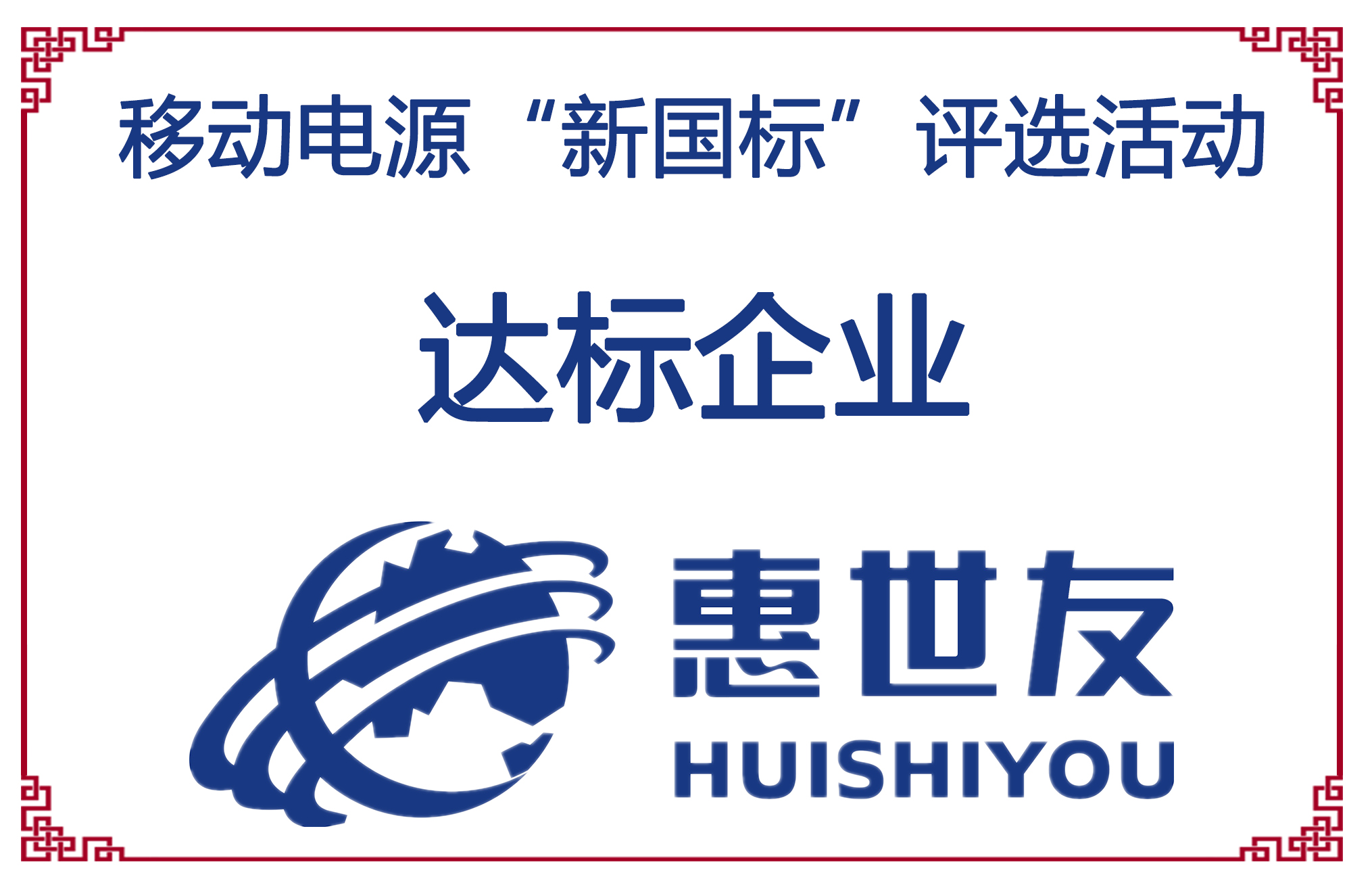 恭喜惠世友荣获“新国标”评测“移动电源达标企业”