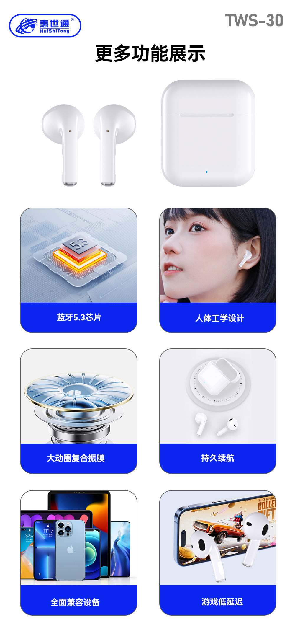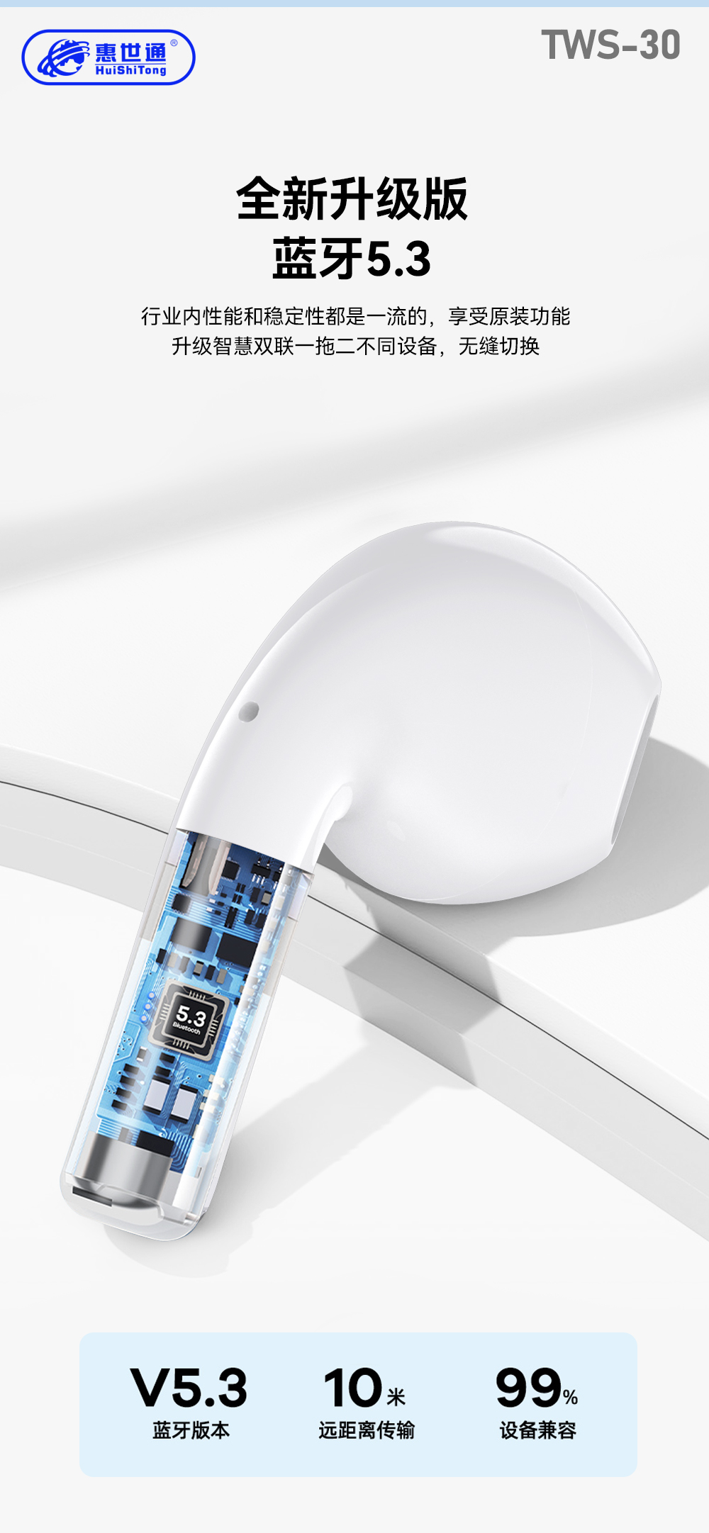 1.时尚高光面处理+合页工艺,时尚耐用。 2.蓝牙版本:V5.3兼容V1.1、V1.2、V2.0、V2.1、2.1+EDR、V3.0、V4.1、 V5.0标准。支持双耳通话,自动连接,使用方便。 3.小巧迷你,佩戴更舒适时尚。支持左右耳机配带。触摸操作,简易方便。
