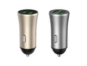 1.阳极氧化合金铝壳+高强度塑胶外观,外观时尚,迷你。 2.输入耐压高,支持24V货车和12V家轿等所有车型。 3.双USB输出,支持2个设备同时充电。 4.多重保护功能,使用更安全更可靠,手机保护无忧。