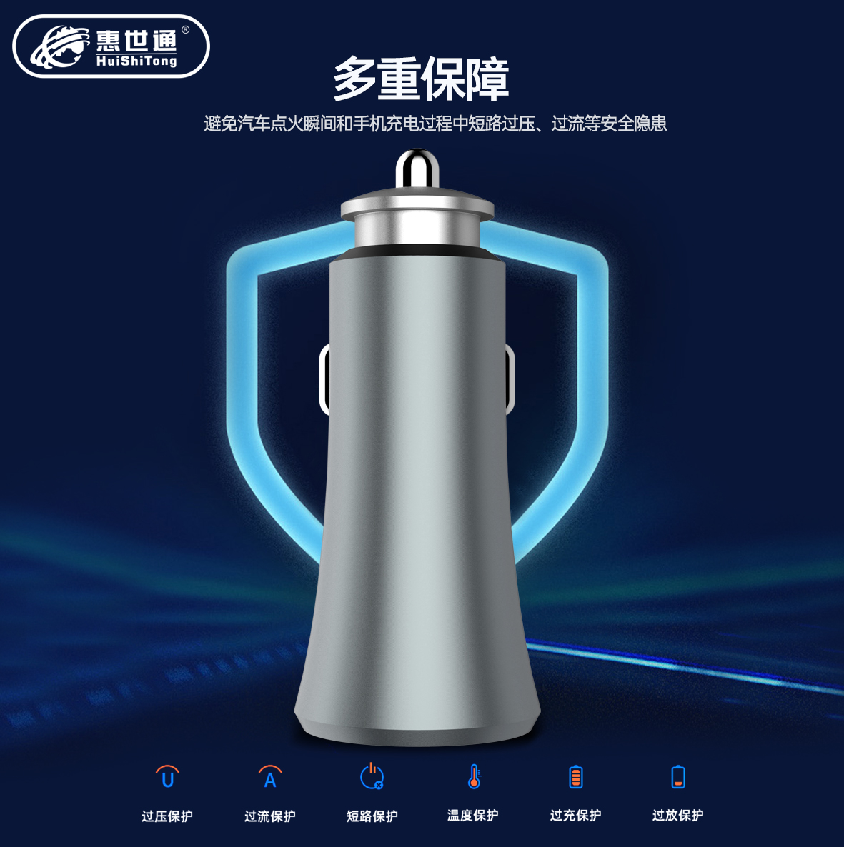 1.阳极氧化合金铝壳+高光装饰环,外观时尚。 2.带锁定环结构钢头, 与车上点烟器插孔配合牢靠,崎岖山路也能稳定充电。 3.A+C双接口快充,是快充手机的最佳伴侣。 4.TYPE-C 支持PD3.0、高通小米QC3.0/QC2.0、三星AFC、华为FCP/SCP等快充协议 5.USB-A接口支持高通小米QC3.0/QC2.0、三星AFC、华为FCP/SCP等快充协议 6.多重保护功能,使用更安全更可靠,手机保护无忧。