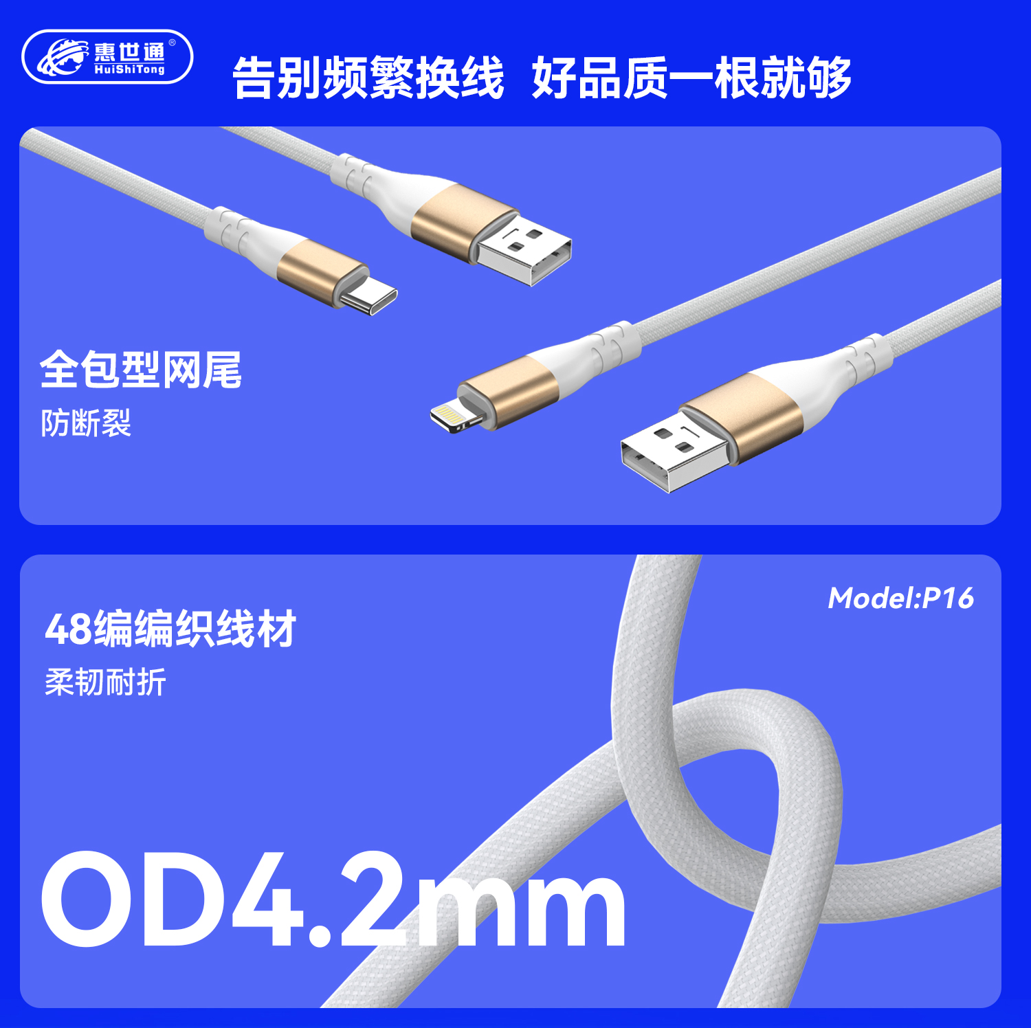 1.TYPE-C接口采用五芯线+全兼容插头,6A大电流,低阻抗减少信号衰减。 2.保持与接头的最佳契合,产品线长1.0M,48绽编织线。线材主体色白色。 3.内部采用环保防断胶料,优质加粗铜线,充电损耗小。 4.采用铝合金套壳工艺,线体4.2mm。加粗铜丝。最大充电功率120W。 5、TYPE-C接口全面支持苹果15,华为,OPPO,VIVO,三星等手机快速充电。苹果接口支持Lightning闪电接口快充。