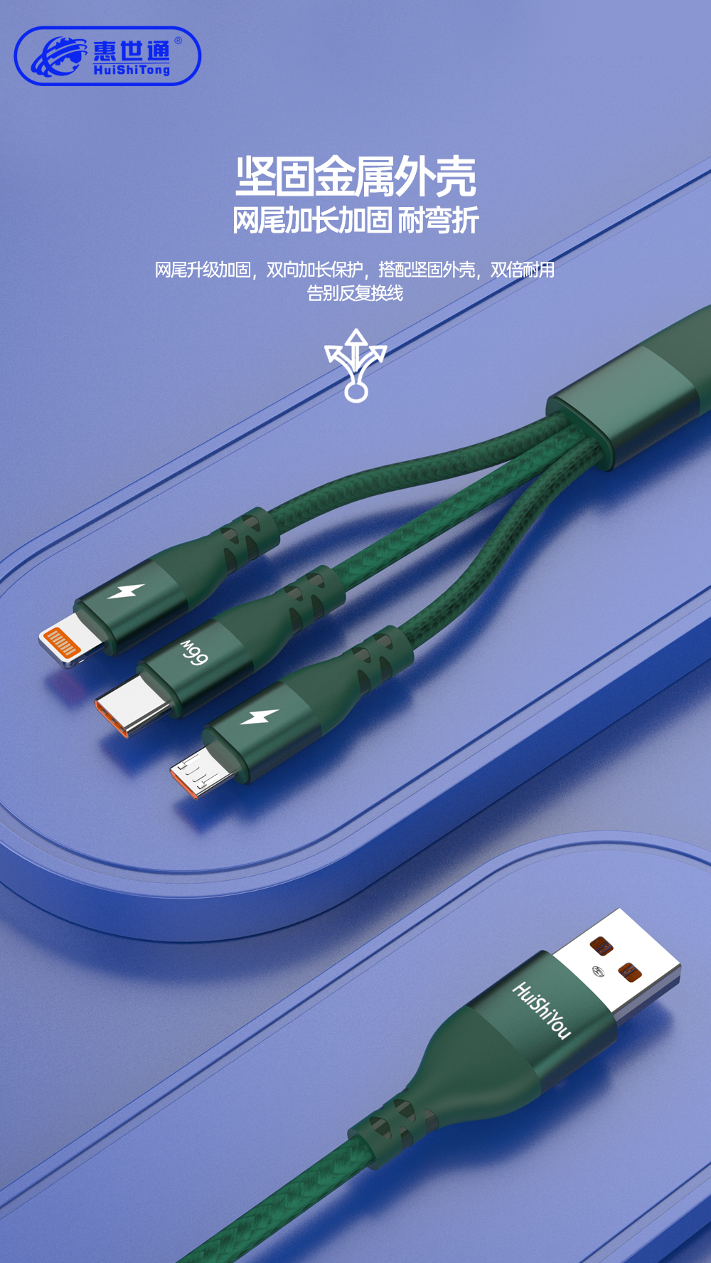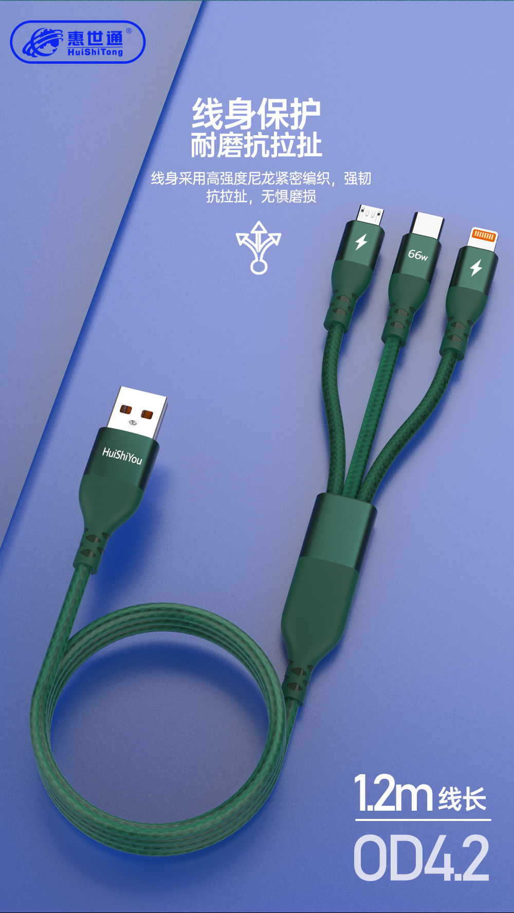 1.一线解决多部调备同时快速充电功能。 2.USB2.0,高纯度四芯组合,低阻抗减少信号衰减。 3.内置环保TPE材质,外置高强度尼龙编织,强韧抗拉扯,无惧磨损。 4.插头两端采用坚固铝合金外壳,坚实耐用,手感细腻。 5.内部采用环保防断胶料,152根优质加粗铜线,充电损耗小。 6.TYPE-C全兼容支持66W等大功率输出,支持多部设备同时充电时始终保持快充。