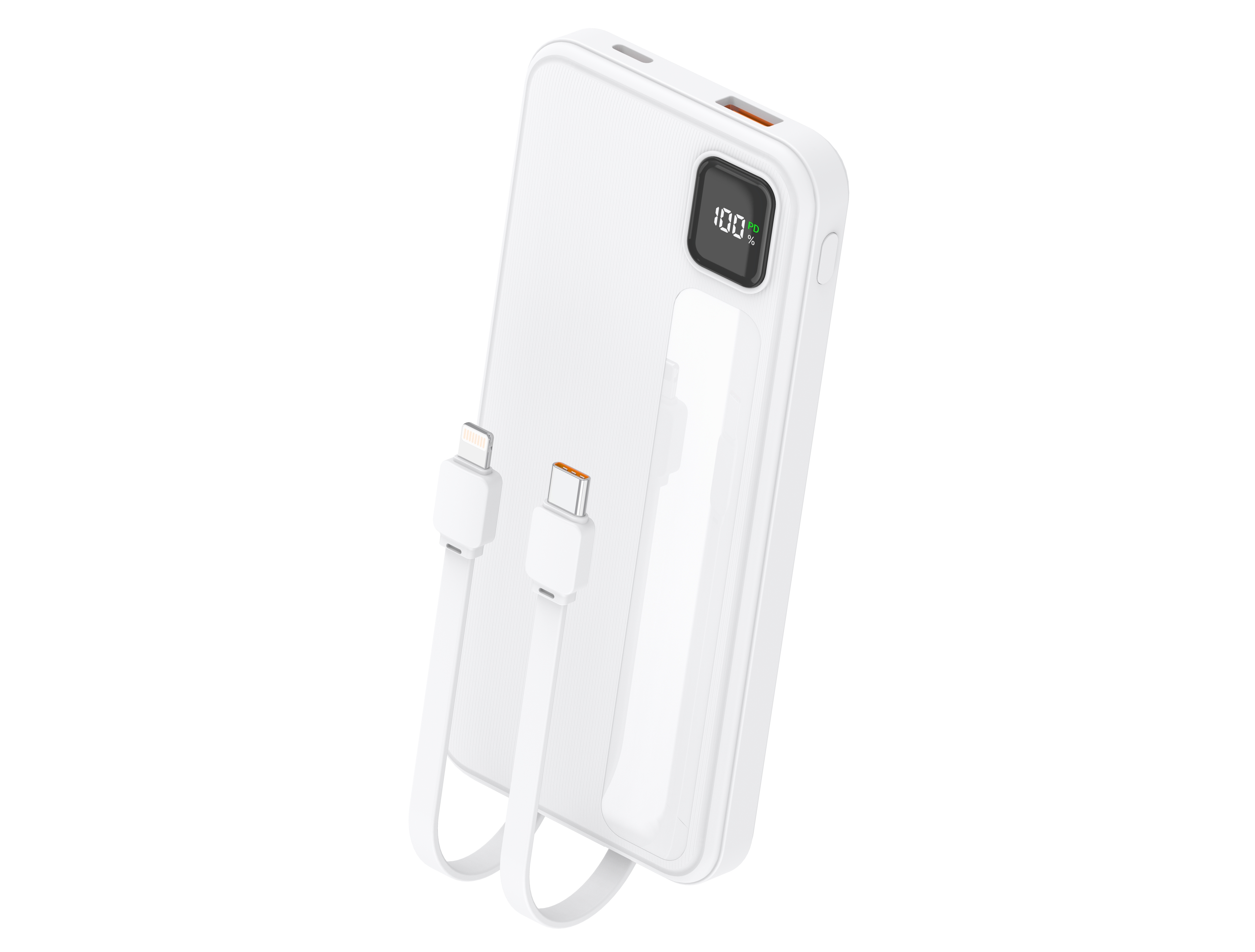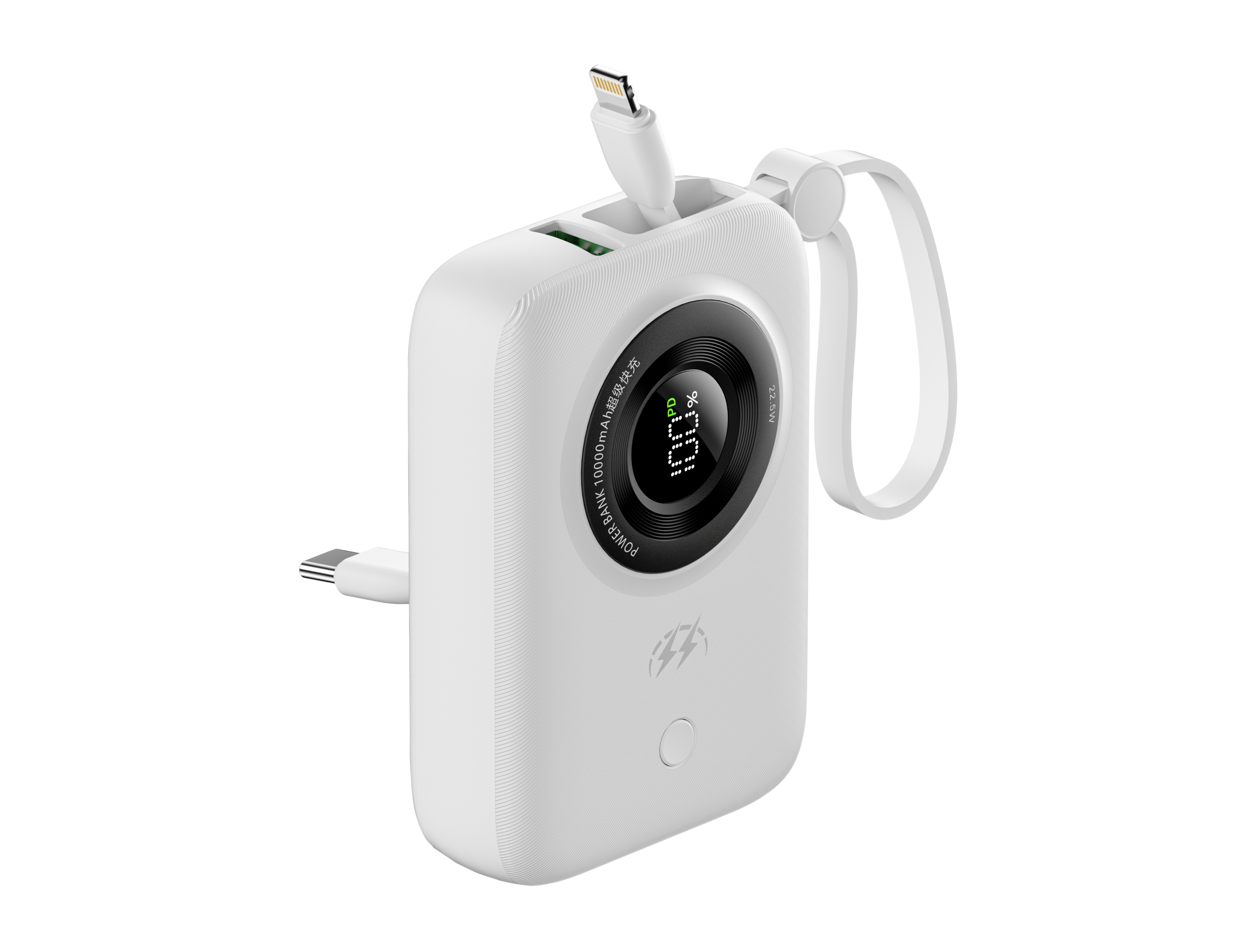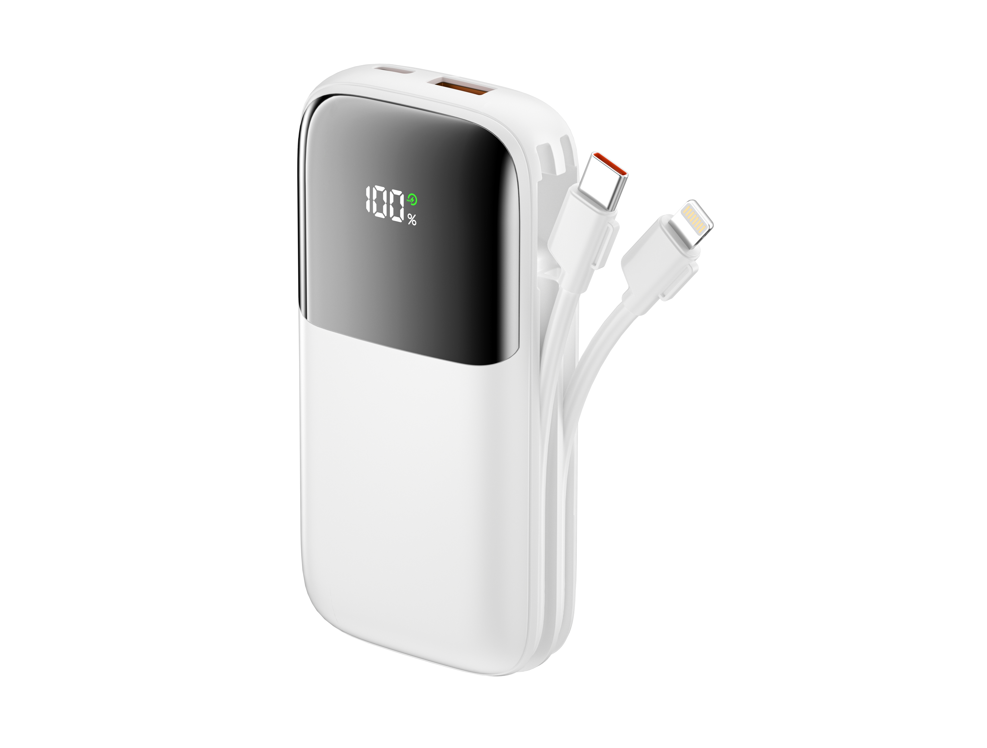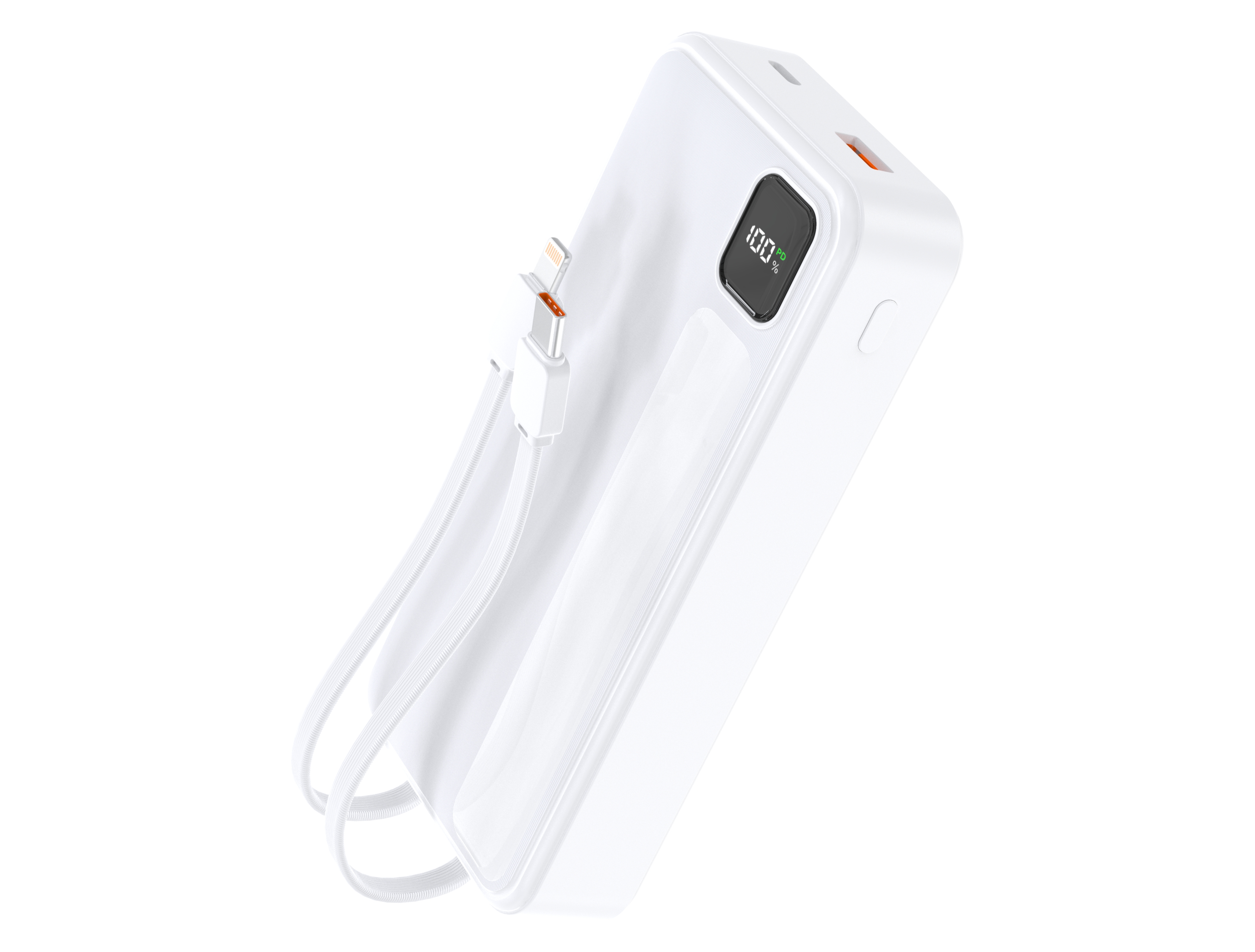 1.ABS+PC防火外壳,数字显示电量,科技时尚。产品颜色白色