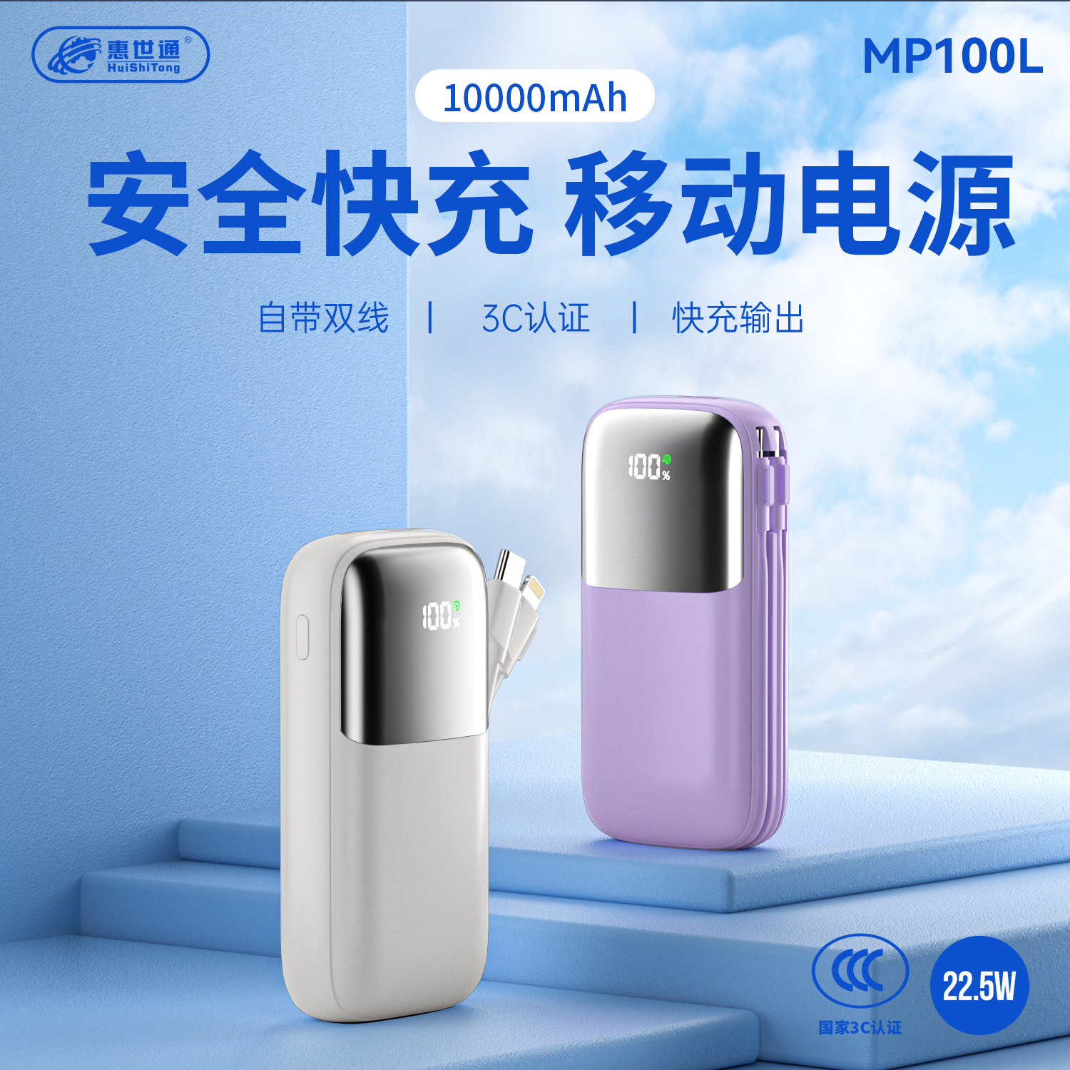 MP100L 自带线数显全兼容迷你 10000MAH 3C认证移动电源