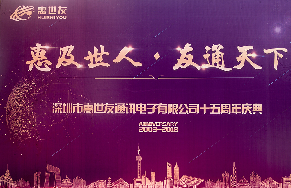 2018年9月18日迎来了惠世友公司的15岁生日,自2003年至2018年,15年的光阴,惠世友风风雨雨一路走来,经过十五年的积累与成长,已是3C配件行业中的知名品牌,铿锵有力的信念,惠及世人,友通天下”道出了惠世友是过硬的品质来惠泽世人,立业扬名赢天下。