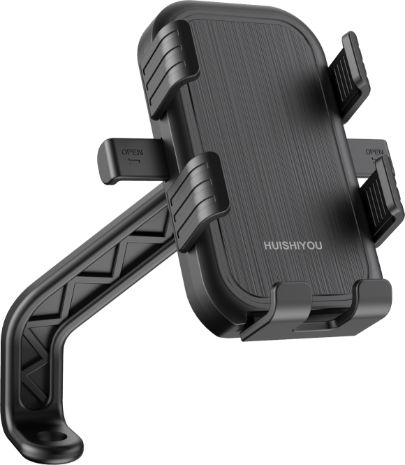 1.ABS+PC合金胶体, 拉丝纹加光面图案+收腰式设计,造型优美。 2.自扣式四向夹臂,夹持稳实,带安全固定锁,永不脱落。 3.夹臂及脱扣按钮自带海绵护垫,防护无处不在。 4.主体与底座滑槽式扭合设计,便于装配,便于清洁。 5.自锁型360度旋转底座,手机方向自由把控而又稳实不晃动,无畏路颠,安静而稳实。 6.带配合螺母固定,无论自行车还是电动车,适配性强、操作简单。