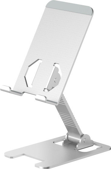 1.桌面艺术品般的时尚外型。 2.折叠式设计,便于收纳与携带,小巧不占空间,广泛适用办公,居家和旅行。 3.全身铝合金主体结构+防滑硅胶垫,低重心,不摇晃,防滑落。适用不同的角度,不同的视角需求。 4.适用产品手机、平板电脑。