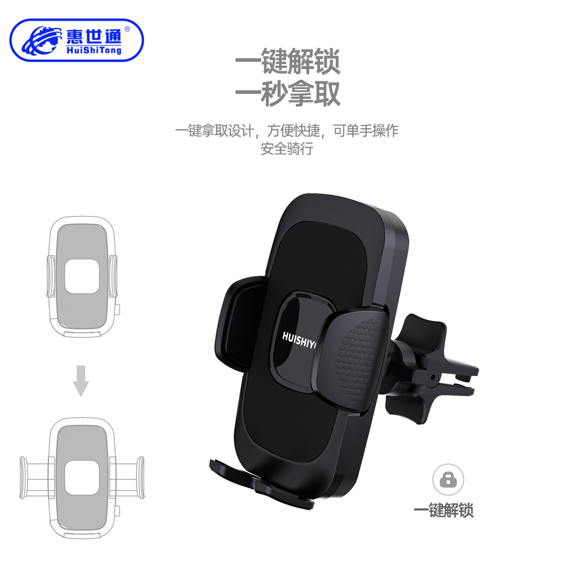 1.优质ABS塑胶搭配斜纹硅胶,美观环保触感舒适。 2.一键开启的按钮设计,自带节奏感的POM齿轮锁紧结构,滑动自如。 3.带缓冲硅胶夹臂,保证牢靠锁紧。 4.万能转向球,360度旋转,可横放、竖放,视野随意调节。 5.螺母锁固空调出风口夹,无论横向出风口还是竖向出风口,都会一锁即牢,永不脱落。 6.转向球内硅胶垫设计,方向一锁紧,永不偏移。 7.夹臂设计,大多数的手机都不挡手机侧边按键。 8.多方位硅胶护垫,手机防护无微不在。 9.手机尺寸4.7-7尺手机使用。