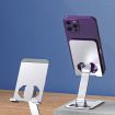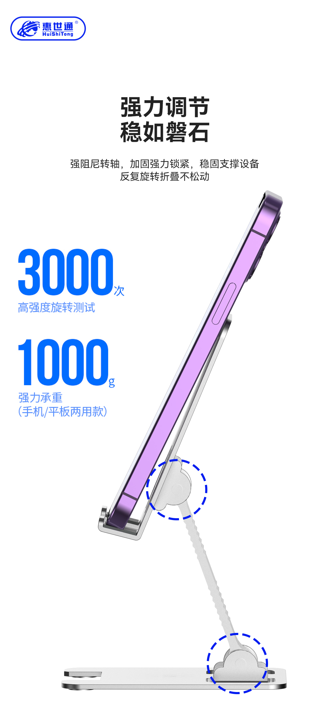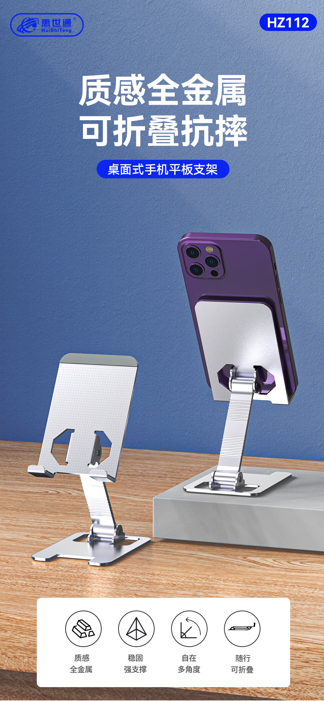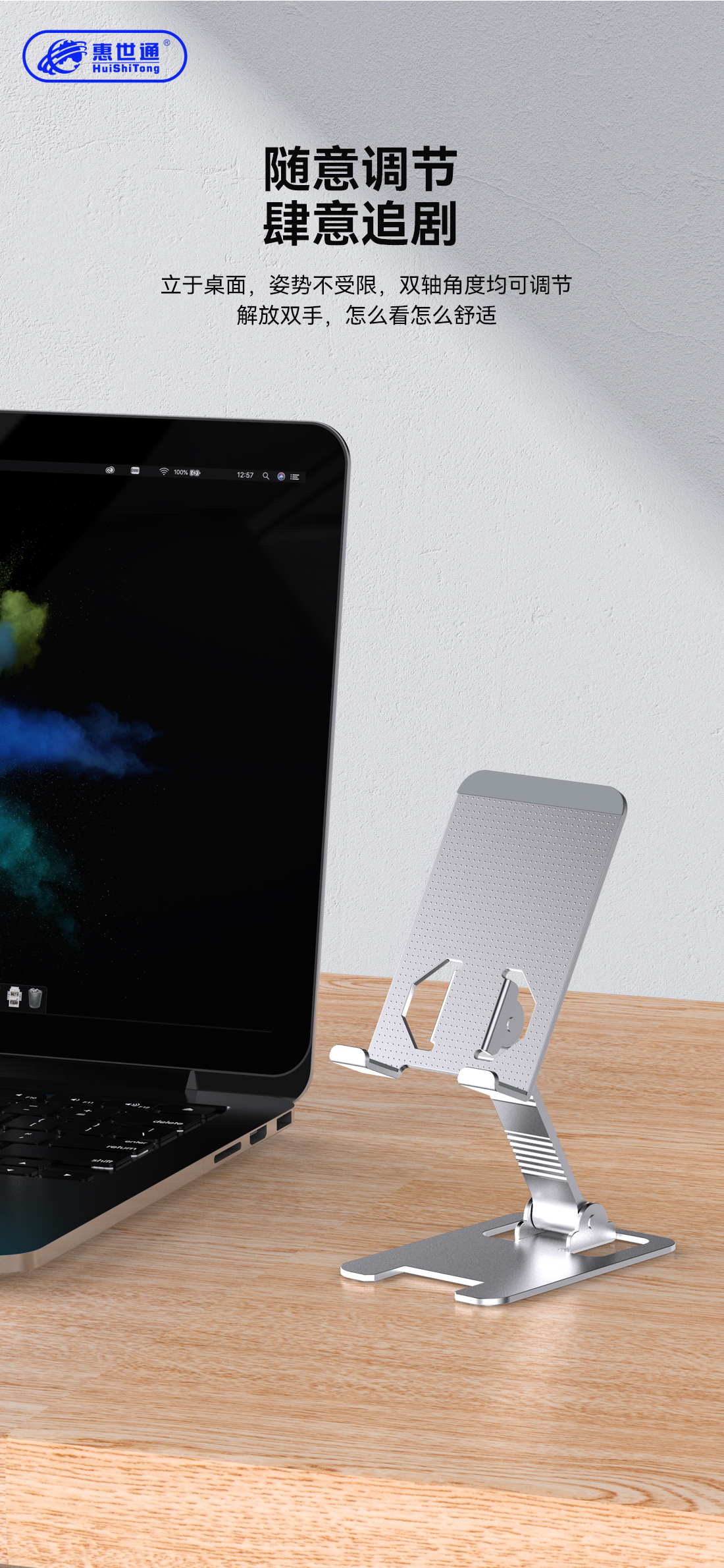 1.桌面艺术品般的时尚外型。 2.折叠式设计,便于收纳与携带,小巧不占空间,广泛适用办公,居家和旅行。 3.全身铝合金主体结构+防滑硅胶垫,低重心,不摇晃,防滑落。适用不同的角度,不同的视角需求。 4.适用产品手机、平板电脑。
